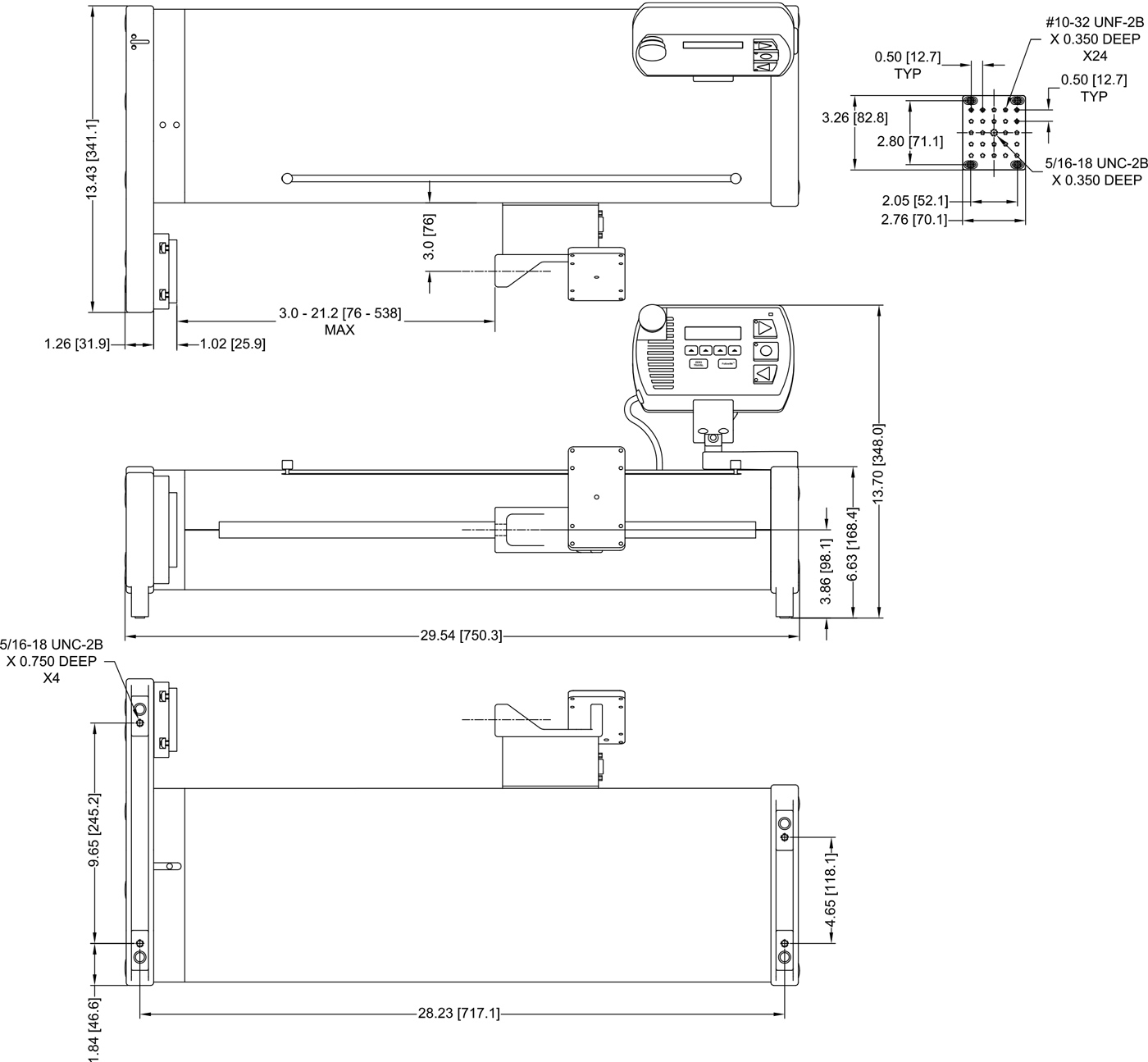 | Travel accuracy*: | ±0.002 in. per 10 in. (±0.05 mm per 250 mm) | |