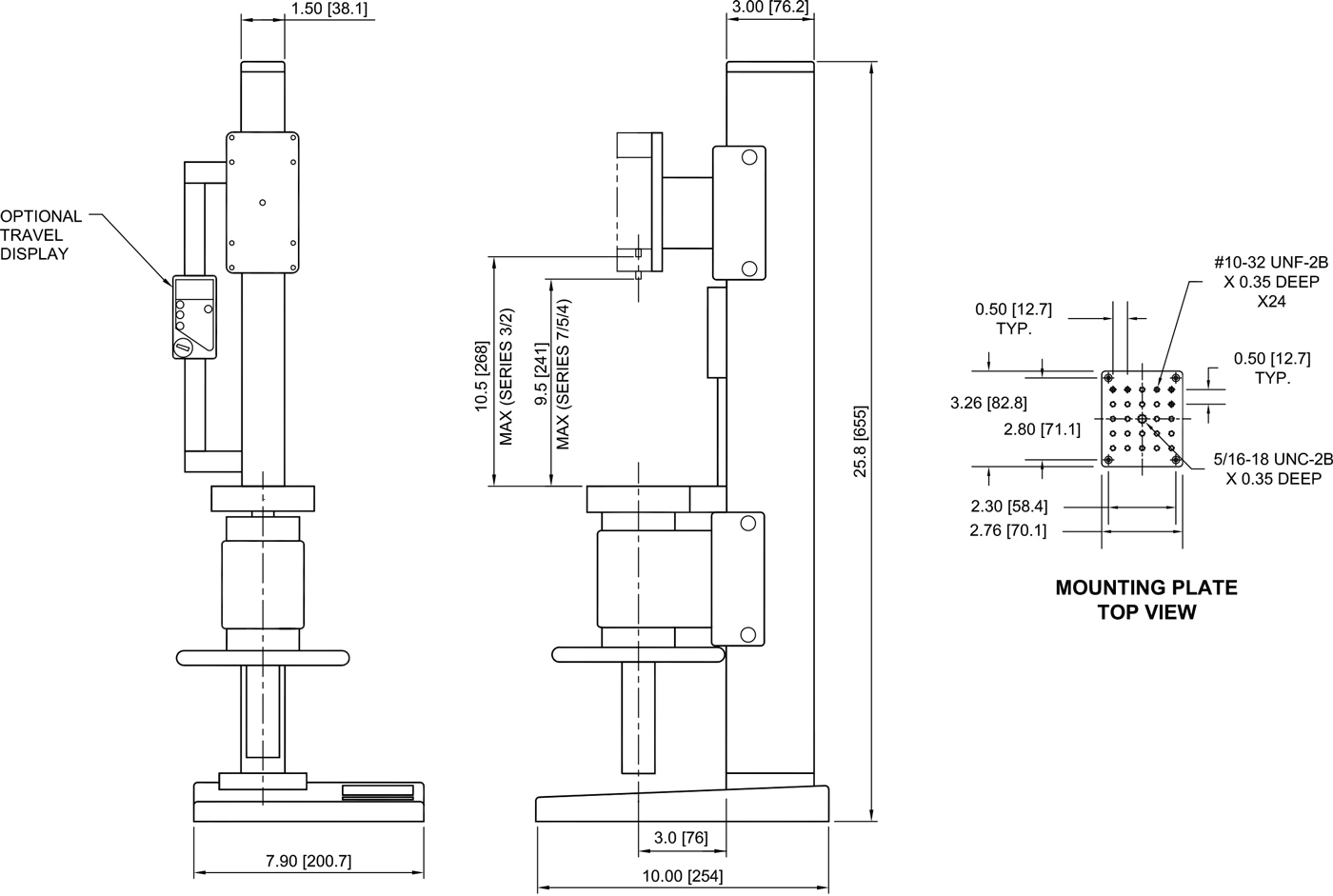 - Loading table with 25 #10-32 UNF holes for fixture mounting
