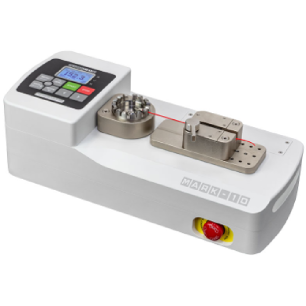 To test using the MR06-200, squeeze the ergonomic handles to increase tension until the sample breaks. Peak force is recorded on a Mark-10 indicator, which can be connected through our Plug & Test ® technology.
