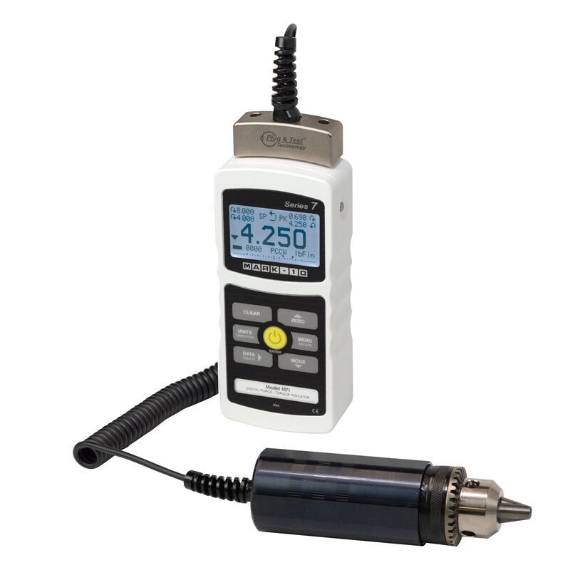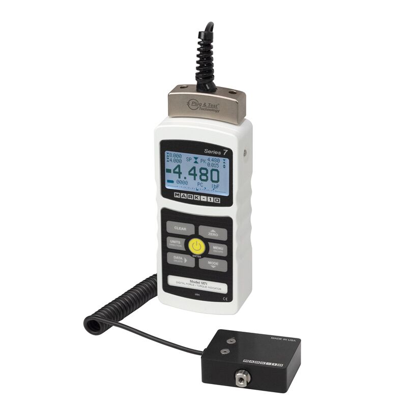 The M7I professional digital force / torque indicator is designed to work with a wide range of Mark-10 remote force and torque sensors. With exclusive Plug & Test® technology, all calibration and configuration data is saved within the sensor’s smart connector, not the indicator, allowing for true interchangeability.