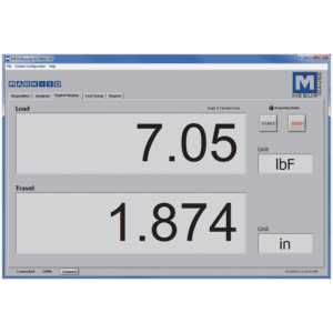 • MESUR®gauge Plus starts and stops models ESM303, ESM303H, ESM750, ESM750S, ESM1500, and ESM1500S motorized test stands, coordinating motion control and data collection with just one click.