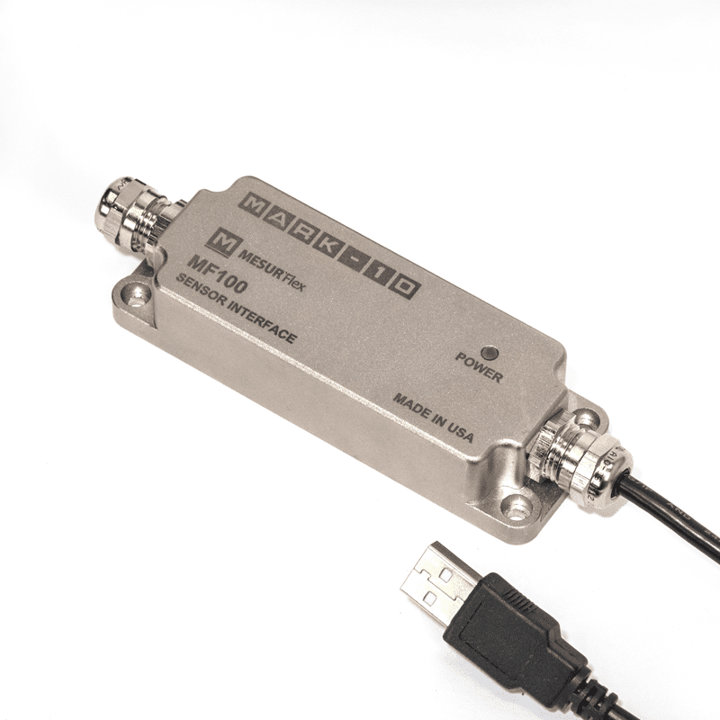 Connect strain gage–based load cells, force sensors, and torque sensors to a PC or USB hub using the Model MF100 USB Sensor Interface and MESUR®Flex configuration software.