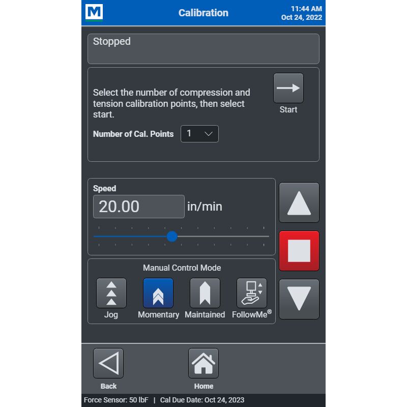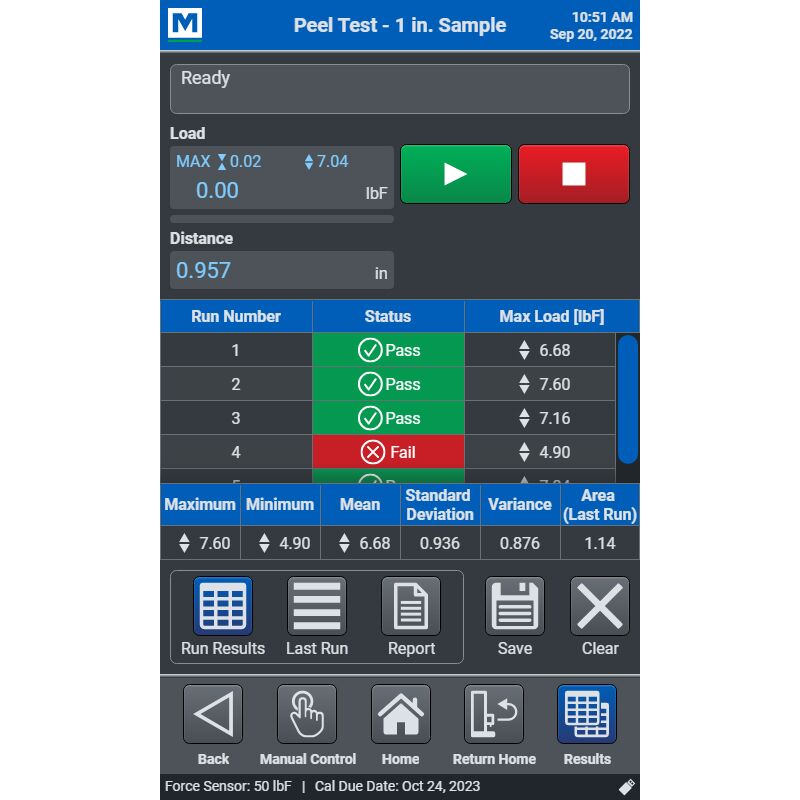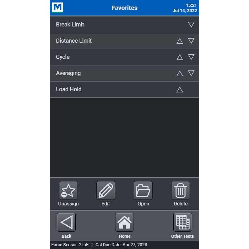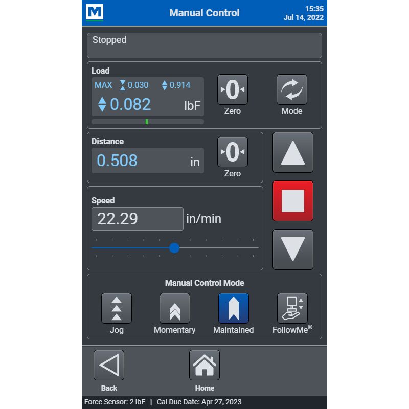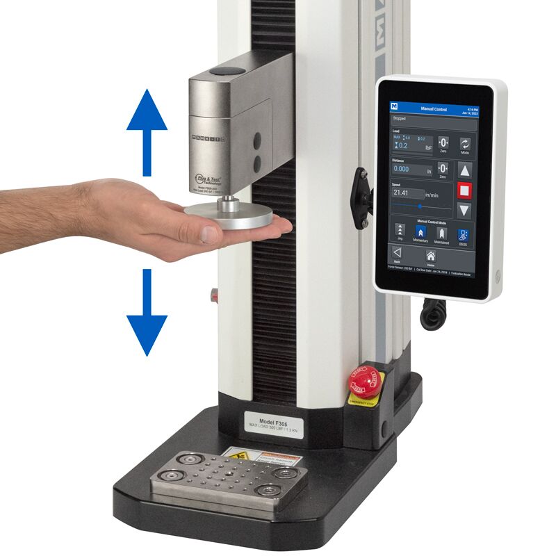 Series F test frames with EasyMESUR® are engineered to perform a wide range of tension and compression tests, including break testing, cycling, limit testing to a load or distance, load holding, average force testing, and more. Set up and run tests, export results, and create a report via the integrated, easy-to-use touchscreen interface